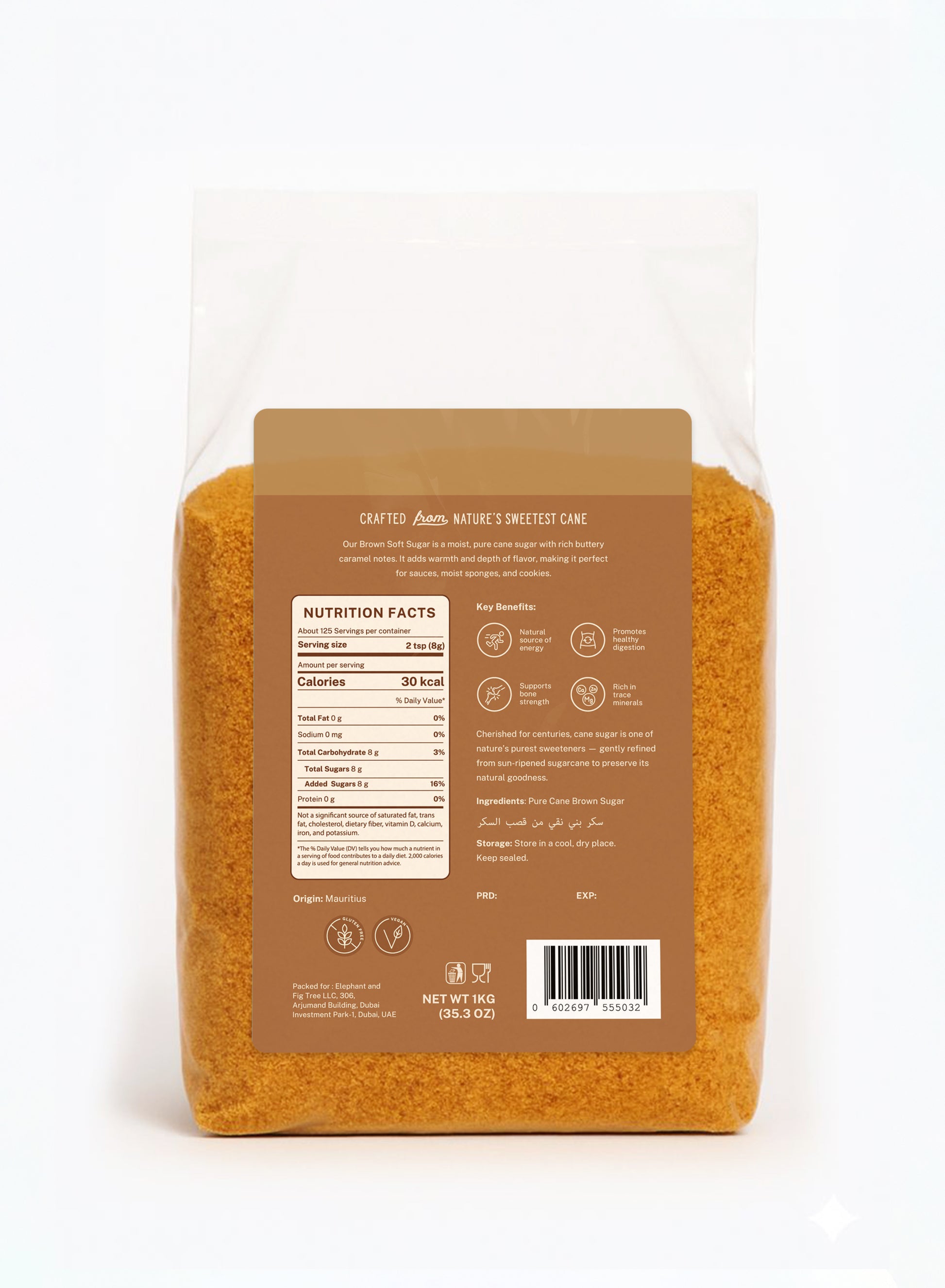 Elephant & Fig Tree Soft Brown Sugar is crafted from pure cane sugar, naturally blended with molasses to create its soft texture and rich, buttery caramel notes. Moist and aromatic, it brings warmth and depth to both baking and cooking.