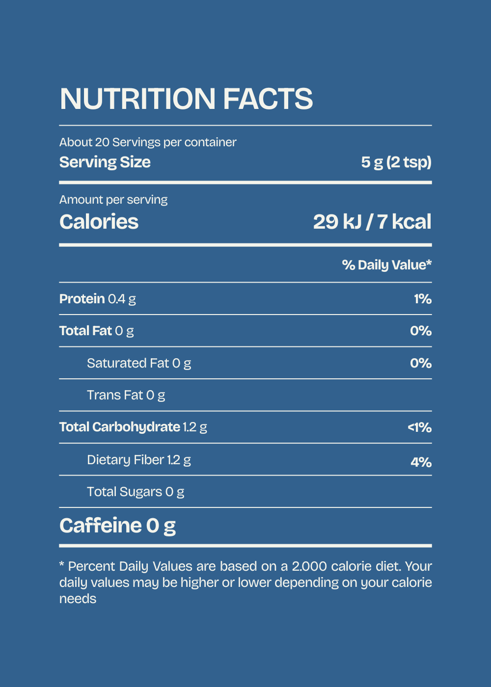 Our Blue Matcha is made from pure butterfly pea flower — a naturally vibrant, caffeine-free botanical celebrated for its rich color and antioxidant properties. This clean, plant-based powder is free of sugar, caffeine, fillers, and common allergens, making it compatible with vegan, paleo, and gluten-free lifestyles. While it offers a beautiful hue and gentle herbal benefits, butterfly pea flower may trigger allergic reactions in sensitive individuals. Because it may also cause digestive discomfort or uterine stimulation, we do not recommend Blue Matcha during pregnancy or breastfeeding. Please consult a healthcare professional before use.
